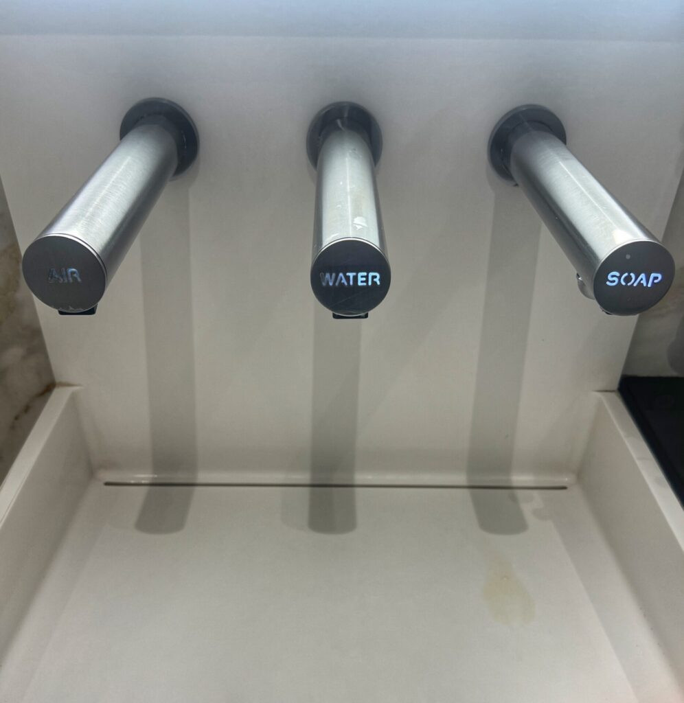 The soap comes out nearly three times before you can position your hand correctly to catch it, while their auto flushing toilets flushed about 15 times while I was trying to release myself from the death hold of my compression socks in the stall.