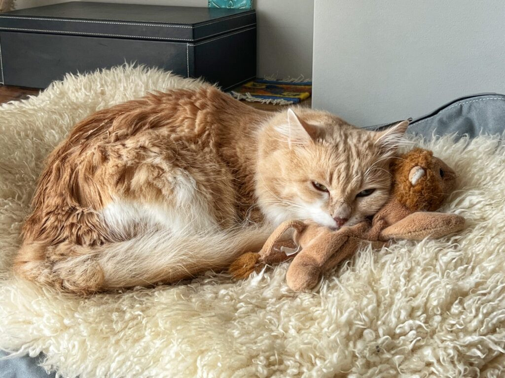 It is absolutely astounding that a tender ‘lil creature like this lived on the city streets, where conditions were not so nice as in Istanbul or Baku. Annie and he were lucky to have found one another. Today, of course, he gets spoiled rotten with delicious wet food, chicken, and butter which he loves to lick off our fingers
