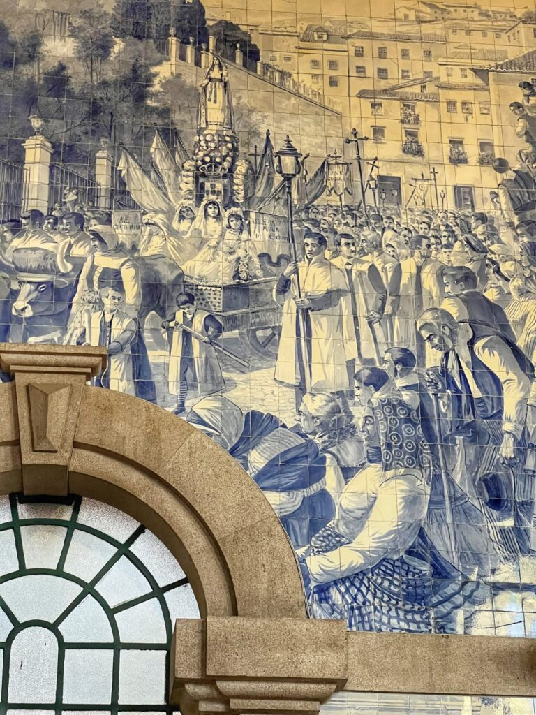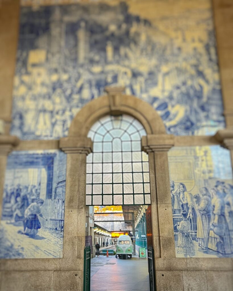 Mosaic tile art can also be found inside the train station, through blue and white masterpieces.