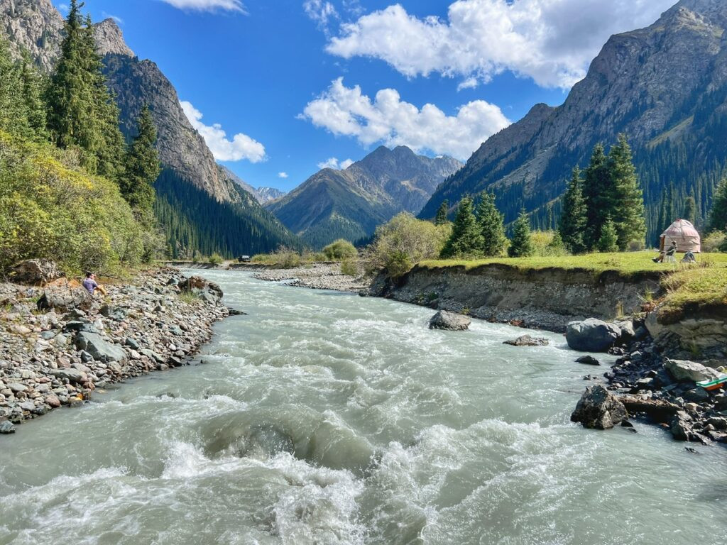 Crossing the Karakol River, which eventually empties into one of the largest’s alpine lakes in the world…Issyk-Kul.