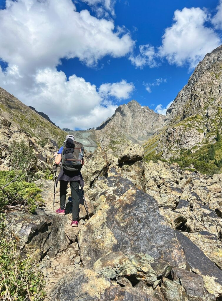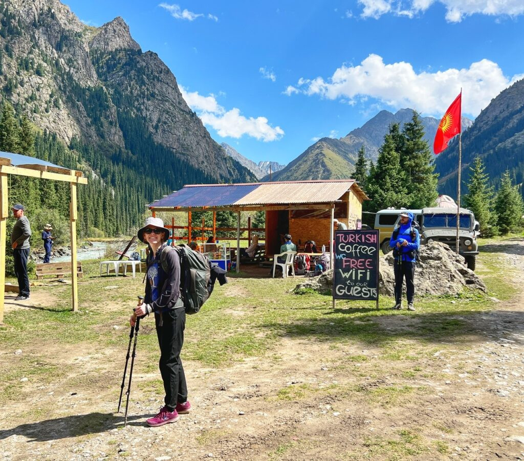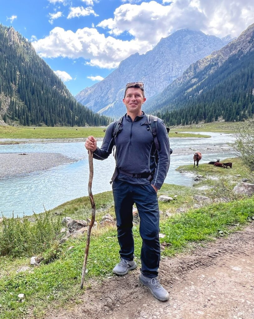 As permanent nomads, since we don’t hike all the time, pulling together our hiking uniform isn’t quite as polished as some of our counterparts. 🤣 The only thing that really mattered (on day two) was the trekking poles which we rented from 4Rent Karakol for $10 for the three days.