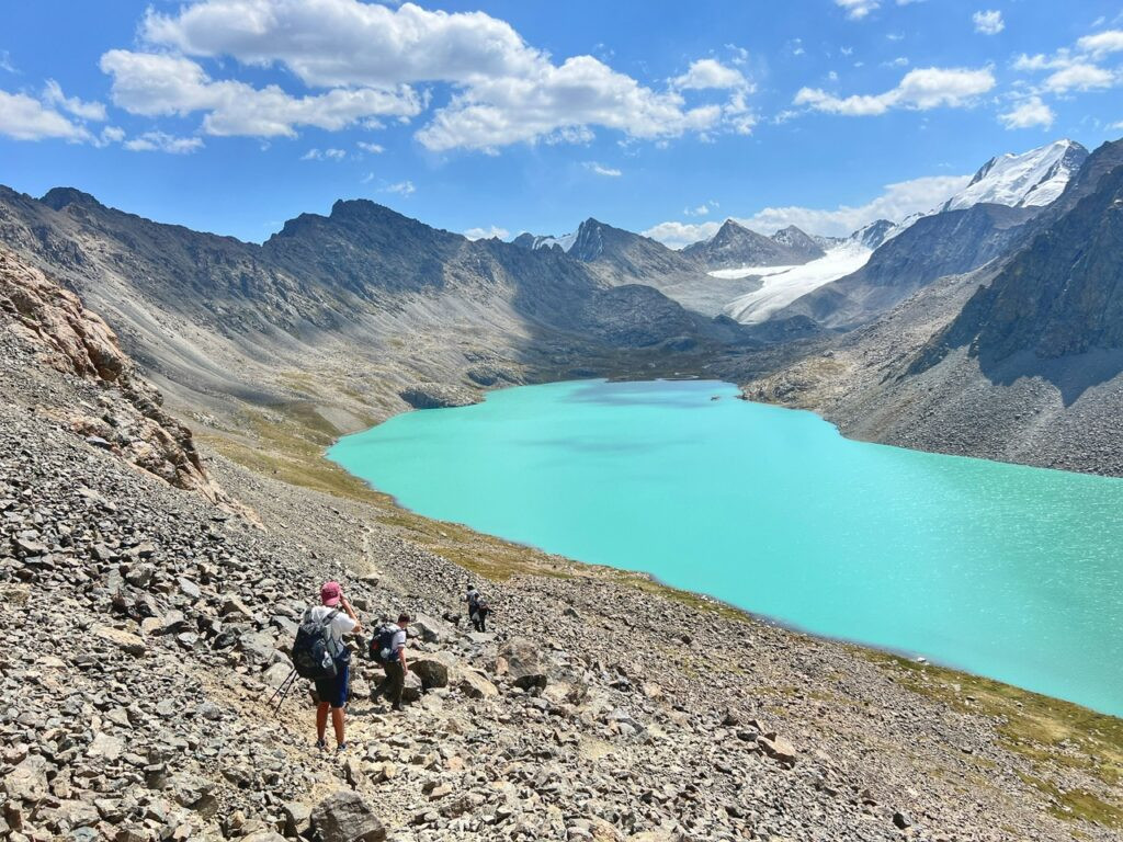 Day two of our Karakol trek was undeniably one of the most challenging days of hiking we’ve experienced since Peru’s Salkantay in 2022. But, the rewards at Ala Kul Lake, seemingly dropped like an icy gemstone amongst the glaciated peaks, and at the pinnacle of the pass, definitely leap high on our list of places that left us speechless.