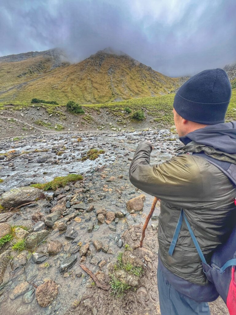 …until we arrived to a small river, which we somehow had to find a way to cross without any bridge or obvious stepping stones. Fortunately, Greg charted our course where the trekking poles once again became a godsend.