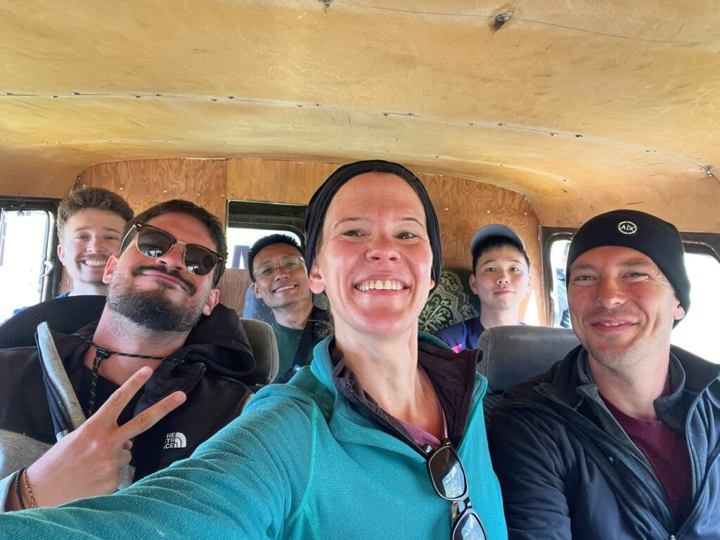 After about 4 hours of relatively flat walking, we arrived to the first yurt camps, where we would find a plethora of 4×4 tanks and indestructible VW buses, as well as drinks, snacks and even wifi!