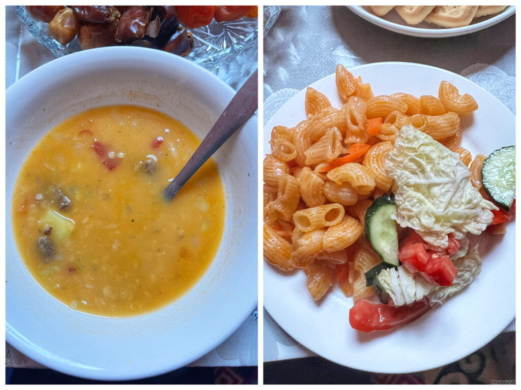 Our meal had a bit to be desired based on the budget-busting price of the stay. It was a vegetable/meat soup, as well as a pile of flavorless pasta and salad. Trust me…our supermarket salads were better. They also offered vegetarian options, from which I’m 100% certain they just picked the pieces of meat out of the soup. Haha.