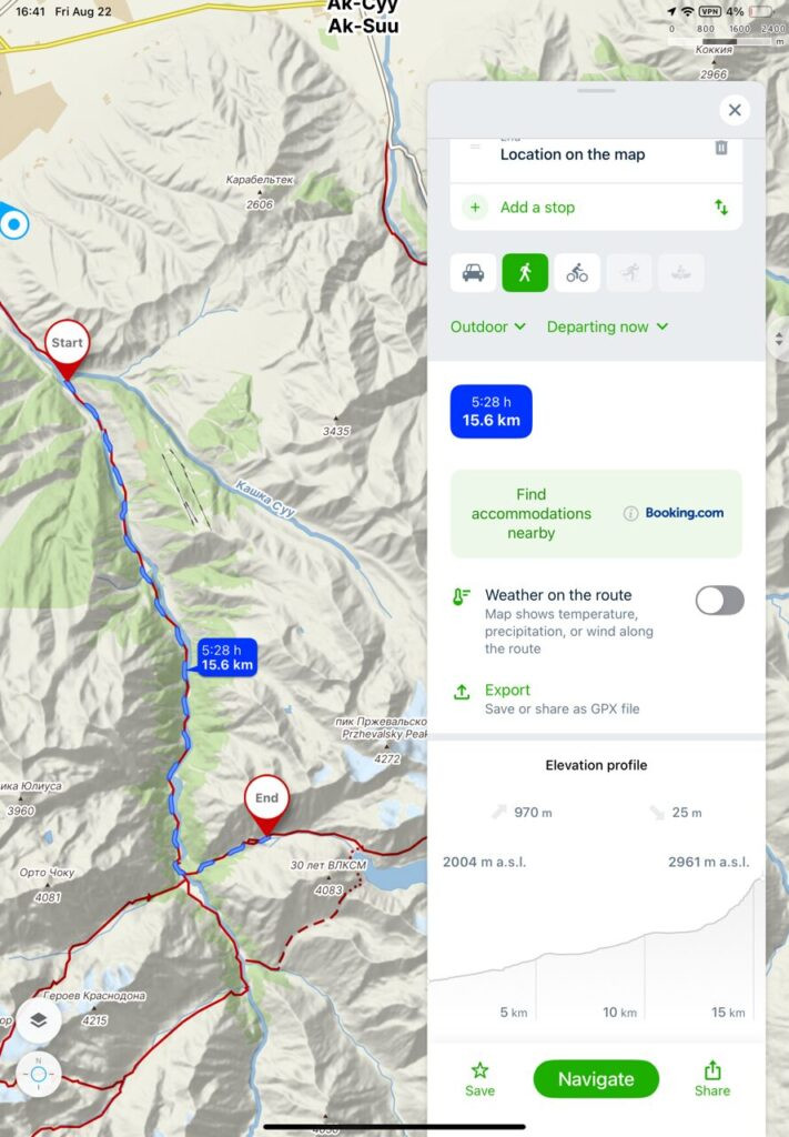 15.6 kilometers, 6 hours, Elevation Gain: 970 meters, or 3,182 feet.