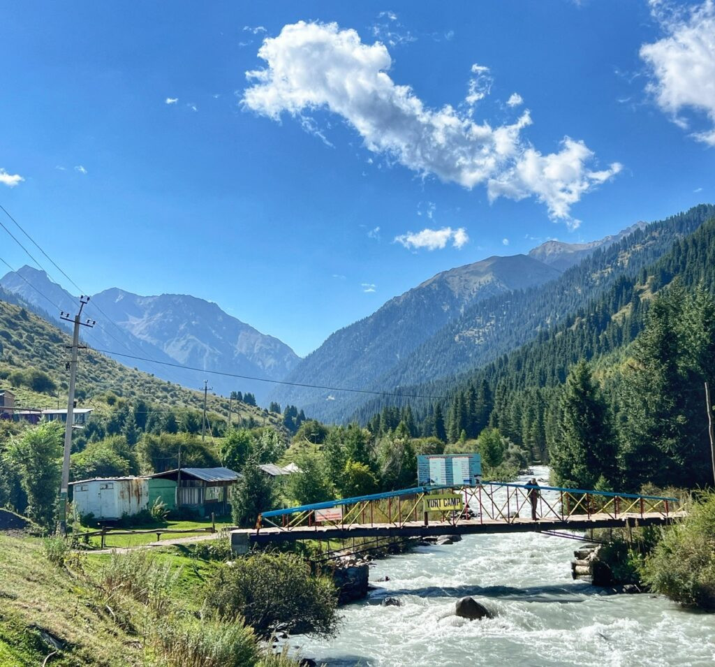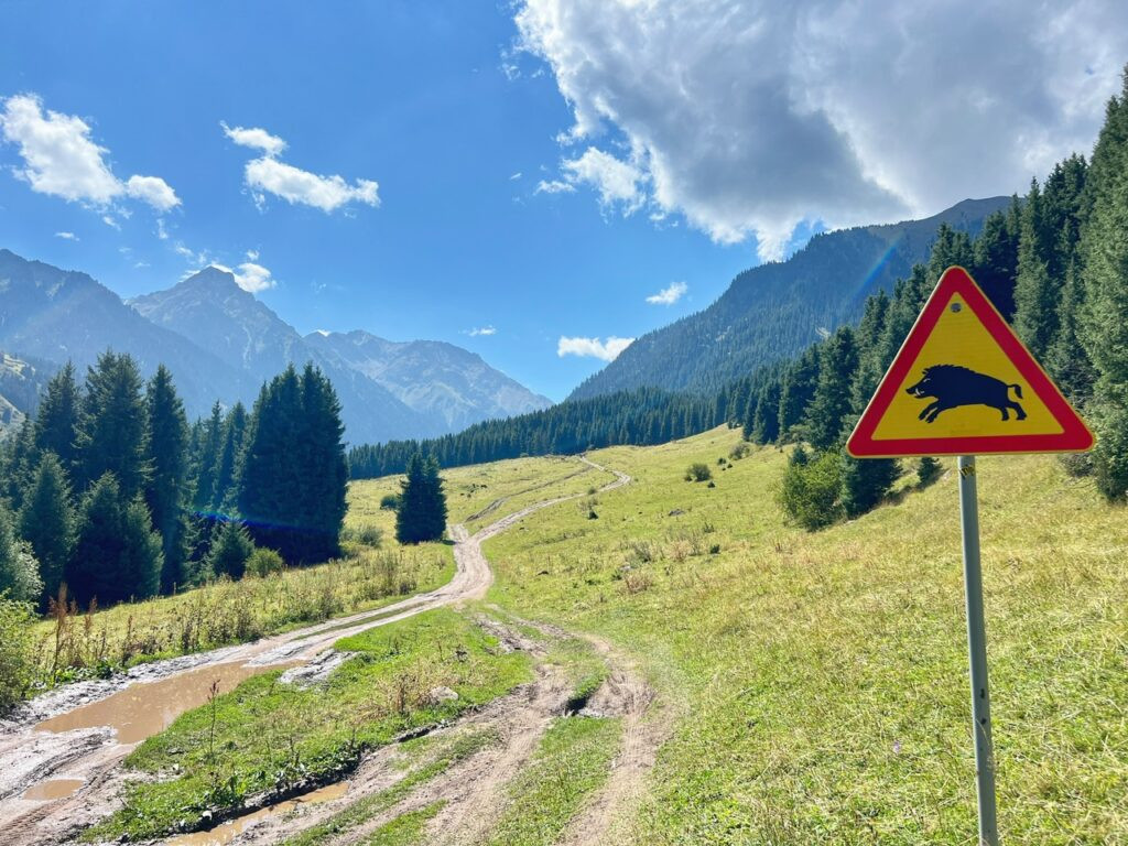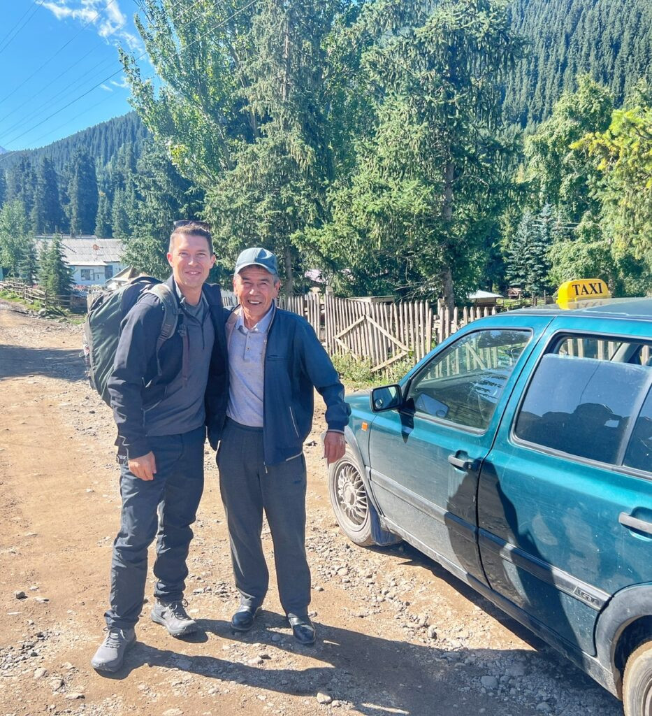 After making all necessary preparations the day prior, including choosing the three consecutive days when the weather was most enticing, it all started with a Yandex ride ($5) to “Jaisan hotel,” just before the second bridge over the River Karakol. This is the point of no return where most (sane) taxi drivers drop off hikers heading to Ala Kul because the road simply turns into something resembling cottage cheese. Just prior to here, you pay the Karakol State Nature Park fee of about $3.50 each. Our taxi driver, Djanivek, was so smiley and kind we exchanged numbers with him in thoughts we might use him again.