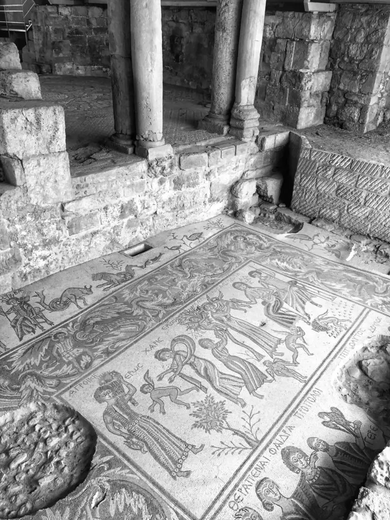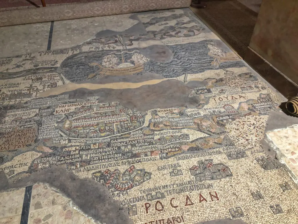 This mosaic map in St. George’s Church is a truly unique treasure and an incredibly intricate display of early Christian culture in Jordan. It represents a one-of-a-kind-find, and is the oldest map of Palestine and the early Christian Holy Land in existence from 560 AD depicting all major biblical sites in the Middle East. The map was only discovered in the 1920’s, when a Christian group of who had settled on the land began excavating the area to build upon it. Imagine making this discovery while digging the foundation for your home. All captions are written in Greek. In this picture you can see the Dead Sea, Jerusalem, Jordan River, Lot’s Cave, and Bethlehem.