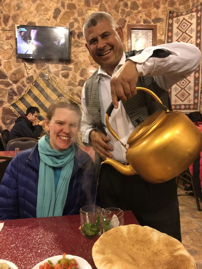 While exploring the village of Dana, we were kindly invited to have tea at the Tower Hotel to have a break from the cold. It was so nice to sit down and talk to the hotel owner and manager and get to know them and share our stories. If we could have stayed the night there we would have… despite the cold outside, it was amazingly peaceful in Dana and the Tower Hotel looked super cute! The offers of tea happened many times to us in Jordan, regularly given free food in stores, or just welcomed with big huge smiles. In short, the people of Jordan are amazing, and so generous with their hospitality!