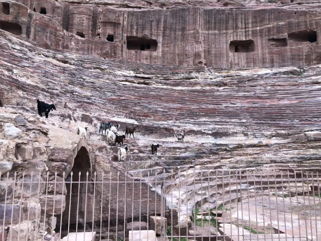 While in this area, you’ll also see the amphitheater which was also chiseled of rock by the Nabateans and later enhanced to seat over 8,500 people by the Romans who plowed in to takeover around 100 AD. It was most likely first used for religious reasons and then for entertainment, because nobody does a good tragic play like the Romans. Today the entertainment consists of watching the plentiful goats frolick and baaa their path over the steps.