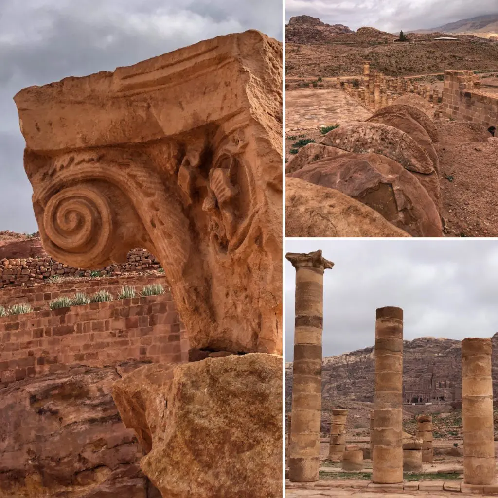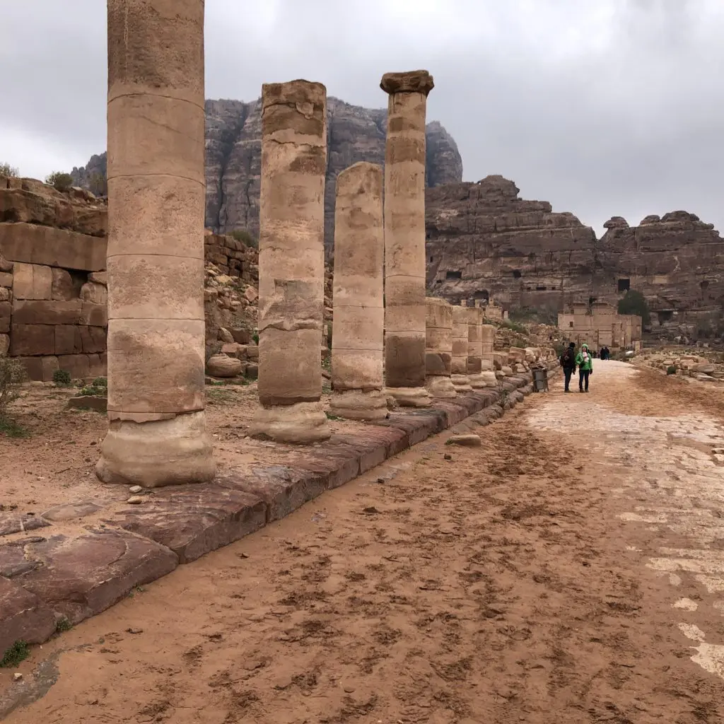 This turns into the colonnaded street, which actually marks the center of the Ancient City. Built in 106 AD, it follows a standard Roman pattern built up after Rome conquered Petra.