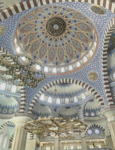 The stunning interior of Bishkek Central Mosque, which was a gift from the Turkish government. This is not a surprise given the look of it.
