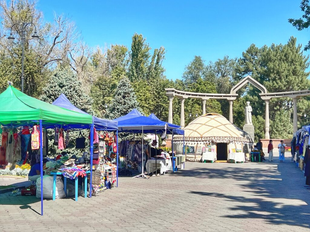 The daily souvenir market which grazes the edge of the park near Erkindik Ave. If you’re looking for traditional clothing, funny hats or beautiful ceramics and jewelry, this is the place to go.