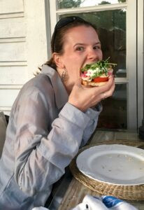 Around the Ek family dinner table. It’s apparently “Swedish law” (or maybe Tina’s?) that if the temperature outside is over 12 degrees Celsius, you “must” eat outside in Sweden.