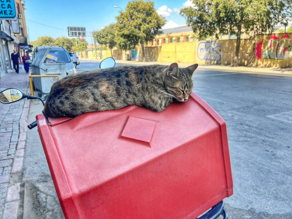 Ah…hem….…Catstanbul. Because…why wouldn’t you snooze on the back of a motorbike?!