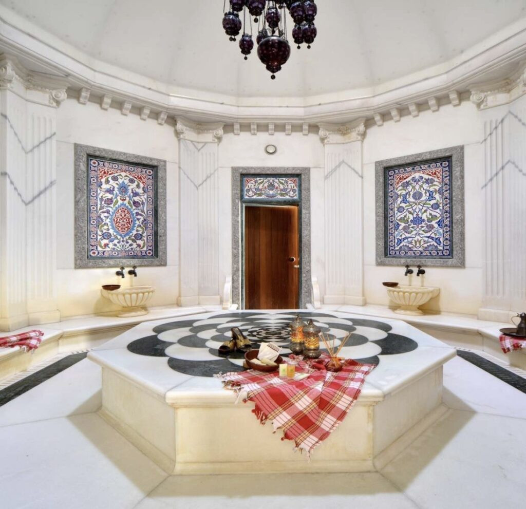 Welcome to our first Turkish hammam….in a Holiday Inn.🤣 Dipping our toe into the bougie life of the hotel points game is proving very tempting…(not our photo!)
