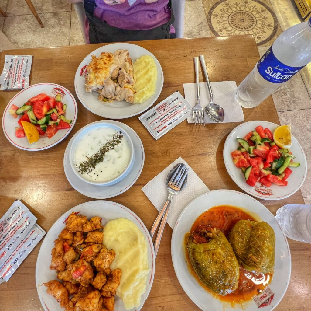 Two other lunches took us to Konak Lokantasi, a traditional Turkish restaurant, because it was good and near our hotel. Our meals ranged from $18-22. A quite similar meal, with one more plate each, cost us $10 in 2022.