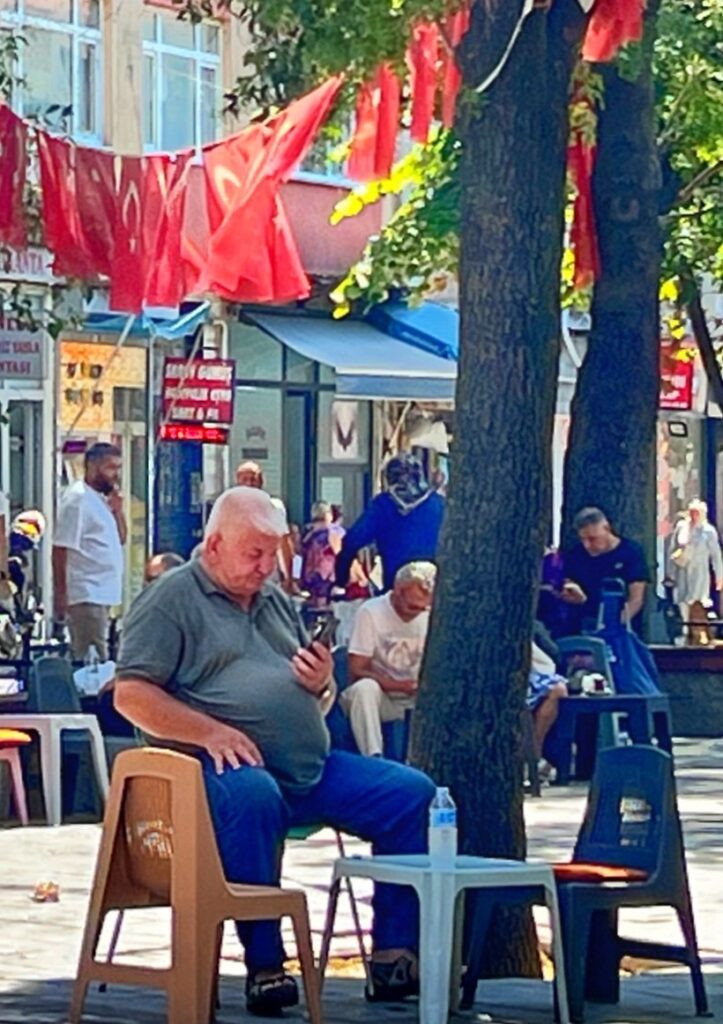 Daily life in Fatih. Even for this older man, it seems his tea hand has made way for his phone. <Sigh>