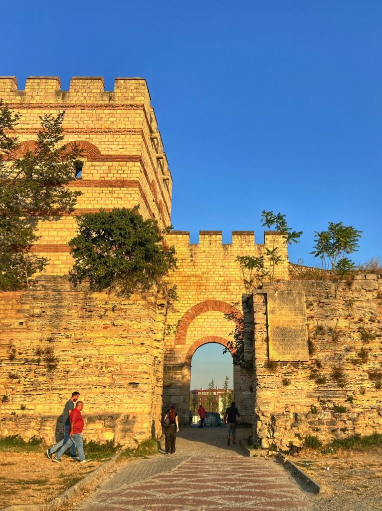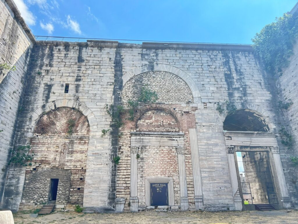 The Golden Gate is one part of the fortress which was leftover from the Romans. Although the exact date of construction is unknown, it is considered that it was built by Theodosius I in the 5th century as a triumphal arch. It is known that the Roman Emperors used the Golden Gate for their ceremonial departure from and return to the city. When it was built first, there was an inscription on the arches, written in Latin with bronze letters, which reads “The one who made the gate in gold created a golden age”. The written sources indicate that there was also a bronze statute of Nike, the goddess of victory, as well as a chariot drawn by an elephant.