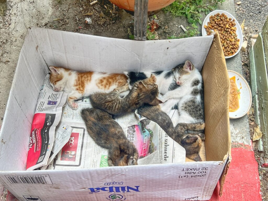 Of course, in a city of hundreds of thousands of street cats, it’s not unusual to find a box full of kittens on the sidewalk. And although most of them are well looked after, when one isn’t, it’s heartwarming to realize how many people care.