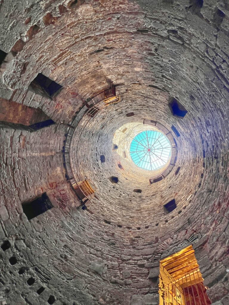 “Yedi” means seven and “Kule” means towers. Four of these towers were built by the Ottomans, when it was converted into a fortress, and three by are original Roman-Byzantine towers from the old city walls, built more than 1500 years ago. Here we are inside one of those towers.