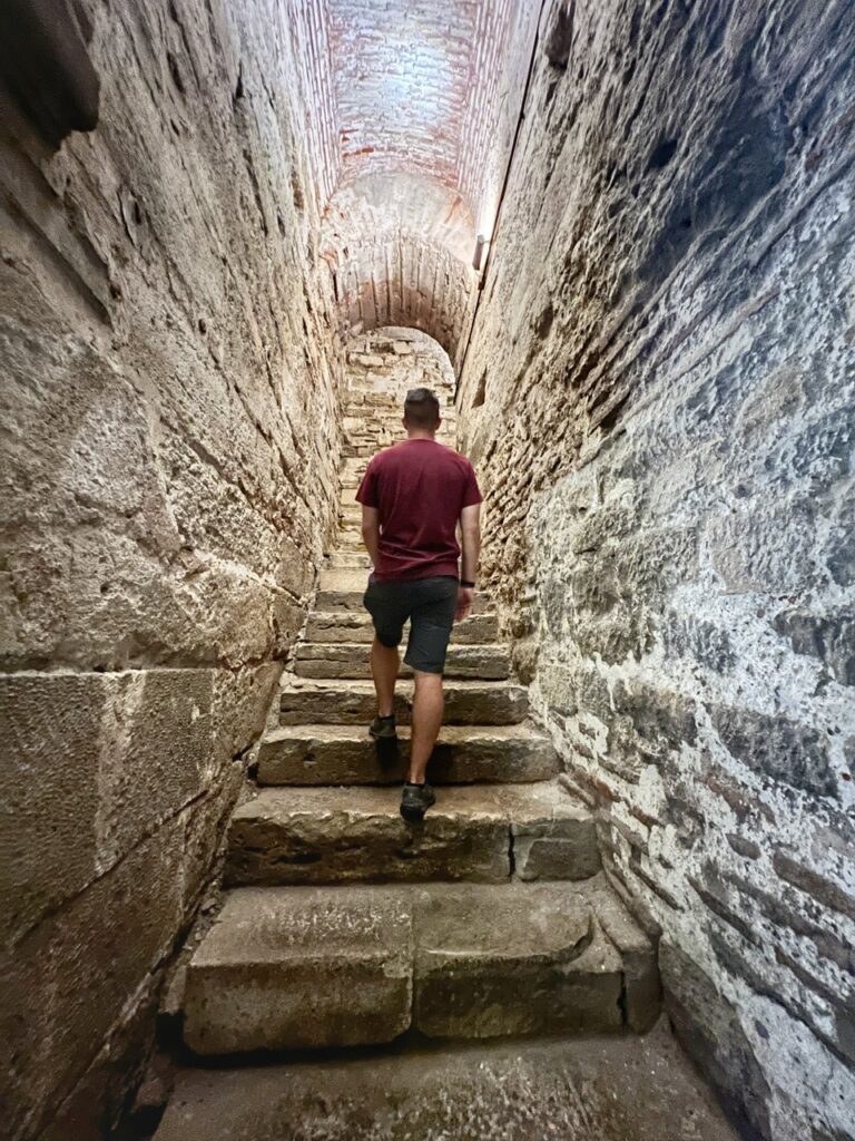 Inside one of the towers, and Greg climbing up the fortress walls. Wow….you are truly part of history here.