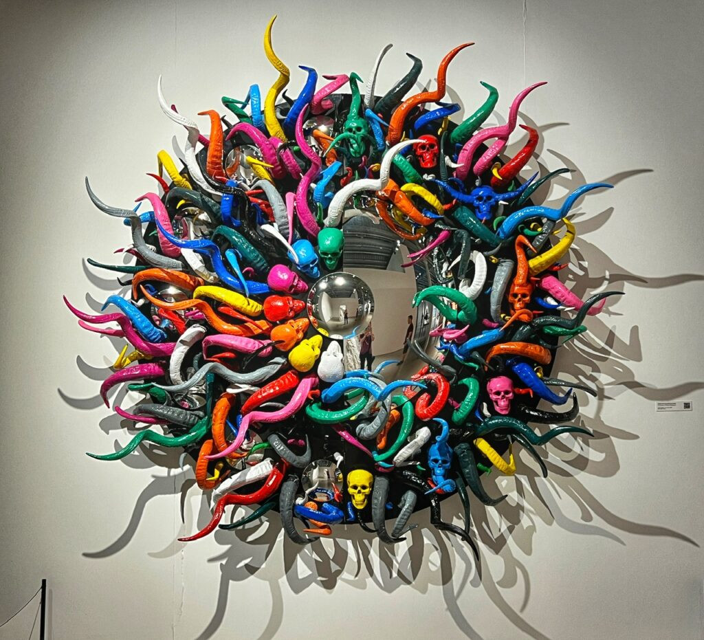 We got to check out Ahmet Güneştekin’s intriguing exhibition called, “The Lost Alphabet.” It was bright, and compelling, sometimes using repurposed materials, but through the mirrors, skulls, snakes, gas masks, suitcases, we didn’t really have a clue what we were looking at half the time. But alas, isn’t this the point of art?!