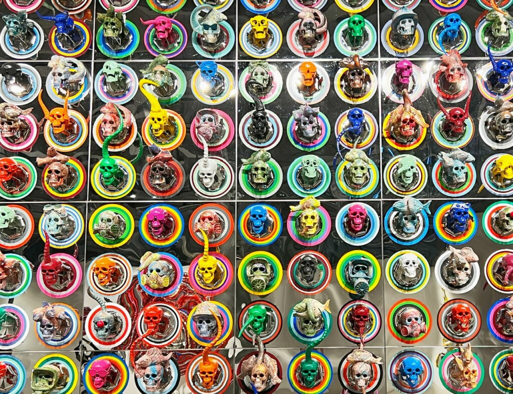 A colossal, and a bit overwhelming, wall of fabric-sheathed skulls.
