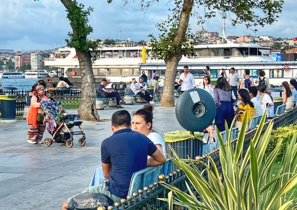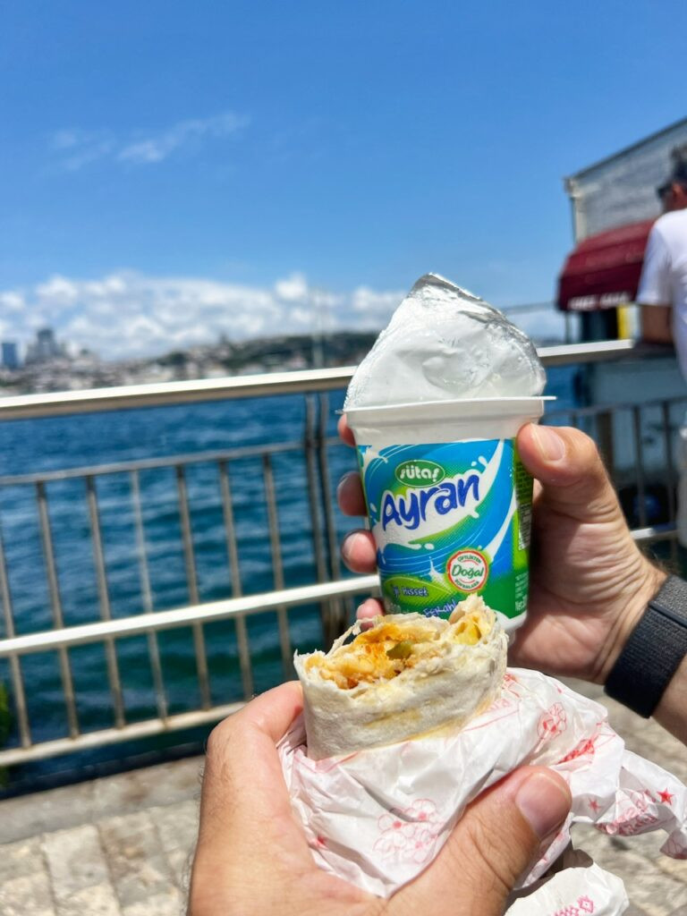 Most meals in the neighborhood were going for about 350-450 Lira, which is $8.50-$11 each, so we decided to eat “cheap” and grab chicken doners and ayran to eat along the water. This meal was about $5 total in 2022. We paid $15 in 2025. The doner alone was $6 each. (But yes, for those curious, it was far better than the Bulgarian version.) Fortunately, we later found doners for $2.10 in Kadikoy which is a little more like it. The view of the Bosphorus though was pretty priceless…