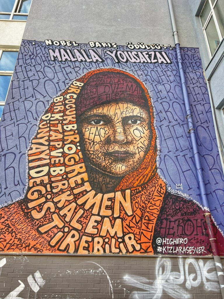Eye-catching street art abounds the neighborhood…including a large mural dedicated to Malala Yousafzai, a Pakistani human rights advocated and the youngest-ever Nobel Peace Prize winner. At age 17 she was internationally recognized for her courageous fight for girl’s education in the face of Taliban oppression.