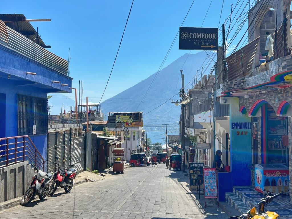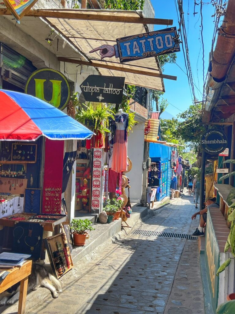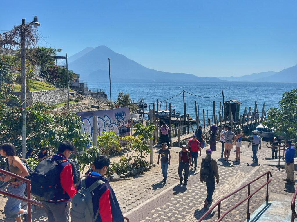 …plenty of local crafts and markets, and loads of vegan, vegetarian and wholesome food options as well as we walked towards the dock, from where we’d catch a ~30-minute boat to Panajachel, the main hub of Lake Atitlan for about $2.50.