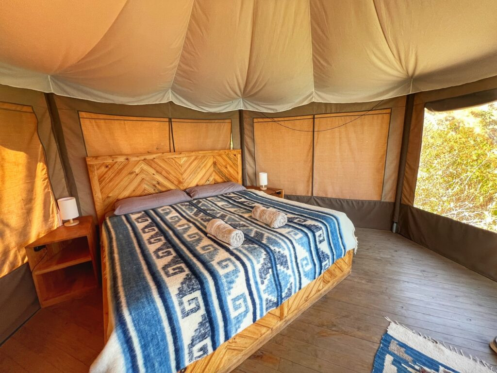 After checking in with the hotel manager, Alice, interestingly from France, she escorted us to our yurt, which was a big splurge at $113 for the night. Inside was unfathomably jumbo sleeping surface, two bed side lamps, filtered water, and a small sink.