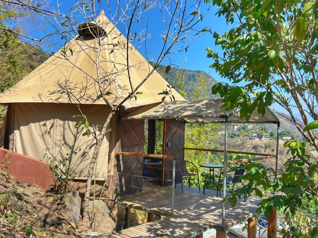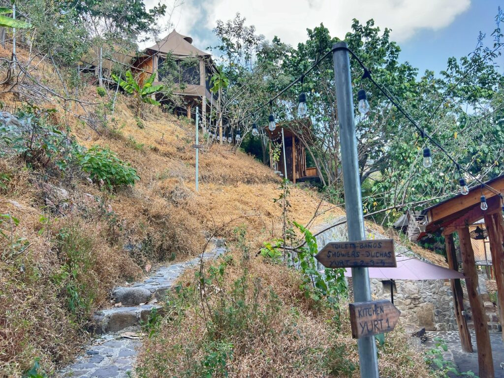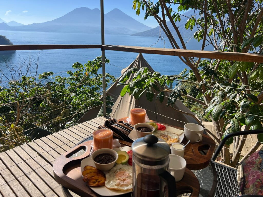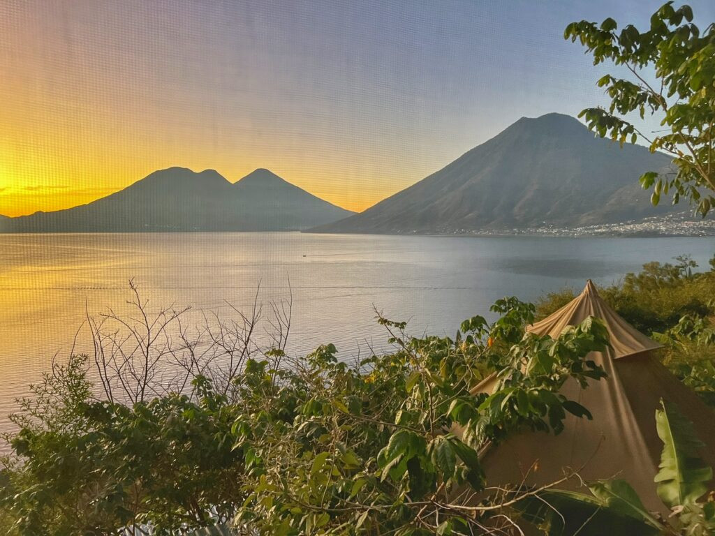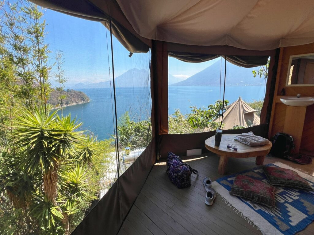 It seems Lake Atitlan has a little something for everyone…the backpacker, the party people, the hiker, the aqua adventurer, the yogi, the spiritual seeker, the hiker…so it would have been unfortunate to not get a small taste of its vibe during my premier visit to Guatemala. I knew I wanted to take my friend for a true glamping experience so after a lot of searching, I settled on Fuego Atitlan Eco-Hotel wedged between San Pablo and San Marcos.