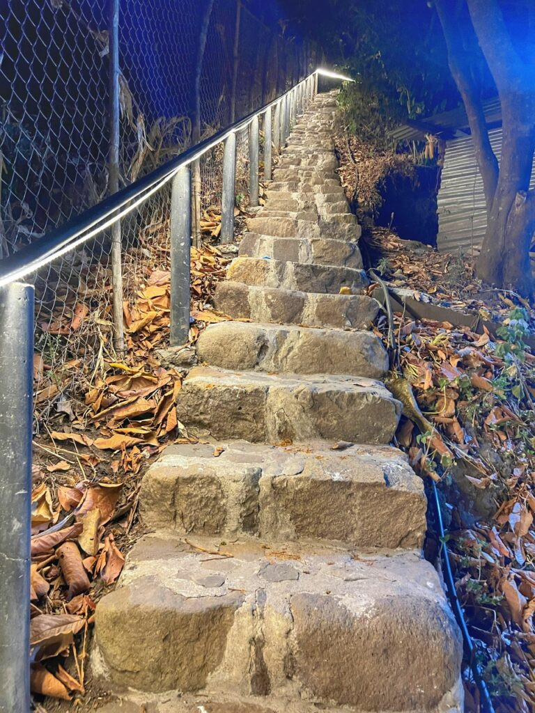 Of course, she only wished she could fly. When we arrived to our hotel, neither of us realized we’d have to climb about 200 steps to get to the reception. Fortunately, the pile of kittens at the top eased any anxieties.