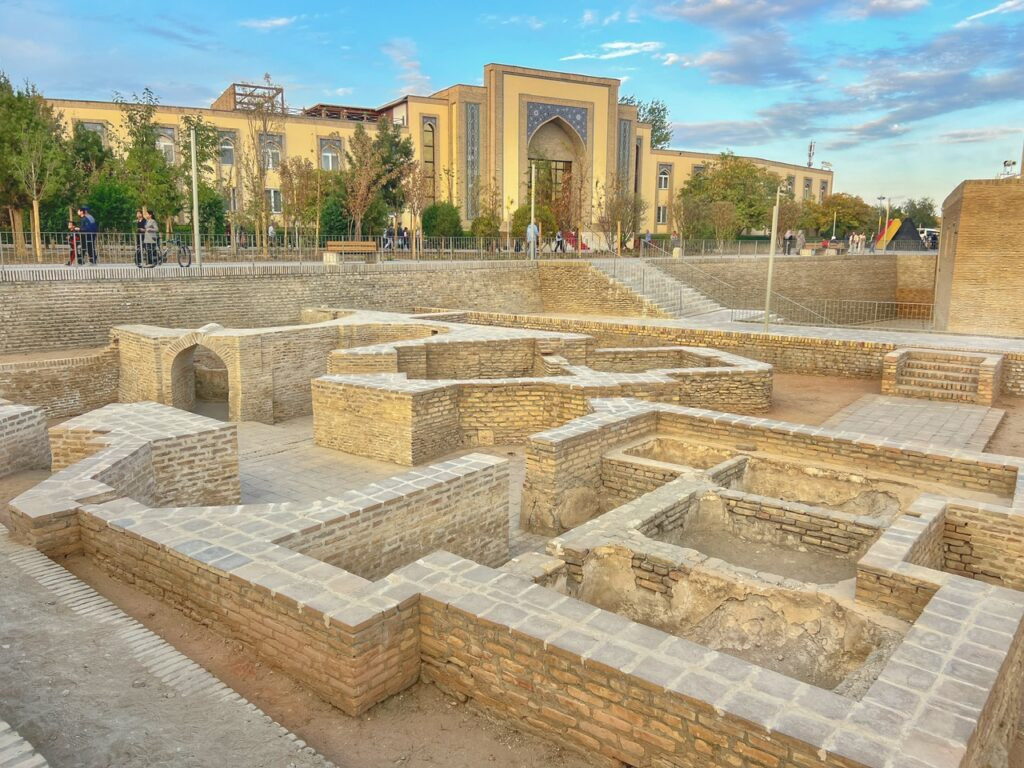 Resembling a behemoth sand castle from its perimeter, the Ark is a semi-restored fortress and royal citadel in the heart of Bukhara. Back in the day, it wasn’t just a fort — it functioned as an entire mini-city, serving as the residence of Bukhara’s rulers for nearly 1,500 years. Archaeological evidence suggests it was originally built between the 4th and 5th centuries, and when Genghis Khan and his buddies destroyed much of Bukhara in 1220, the Ark survived long enough for the Mongols to use it as a command post before tearing most of it down. Today, much of it remains a mystery as it’s only partially excavated and restored.