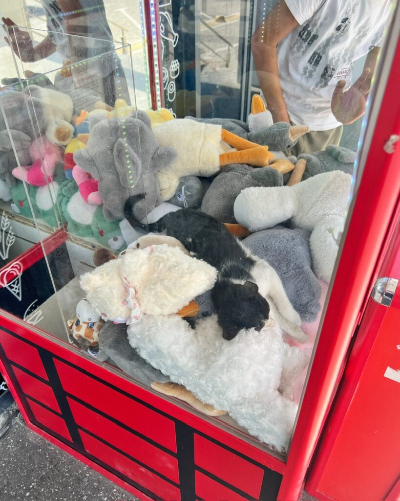 I high-fived the local, who smiled, but just seemed happy to be able to play the claw game with her toddler and not have a cat in the way….