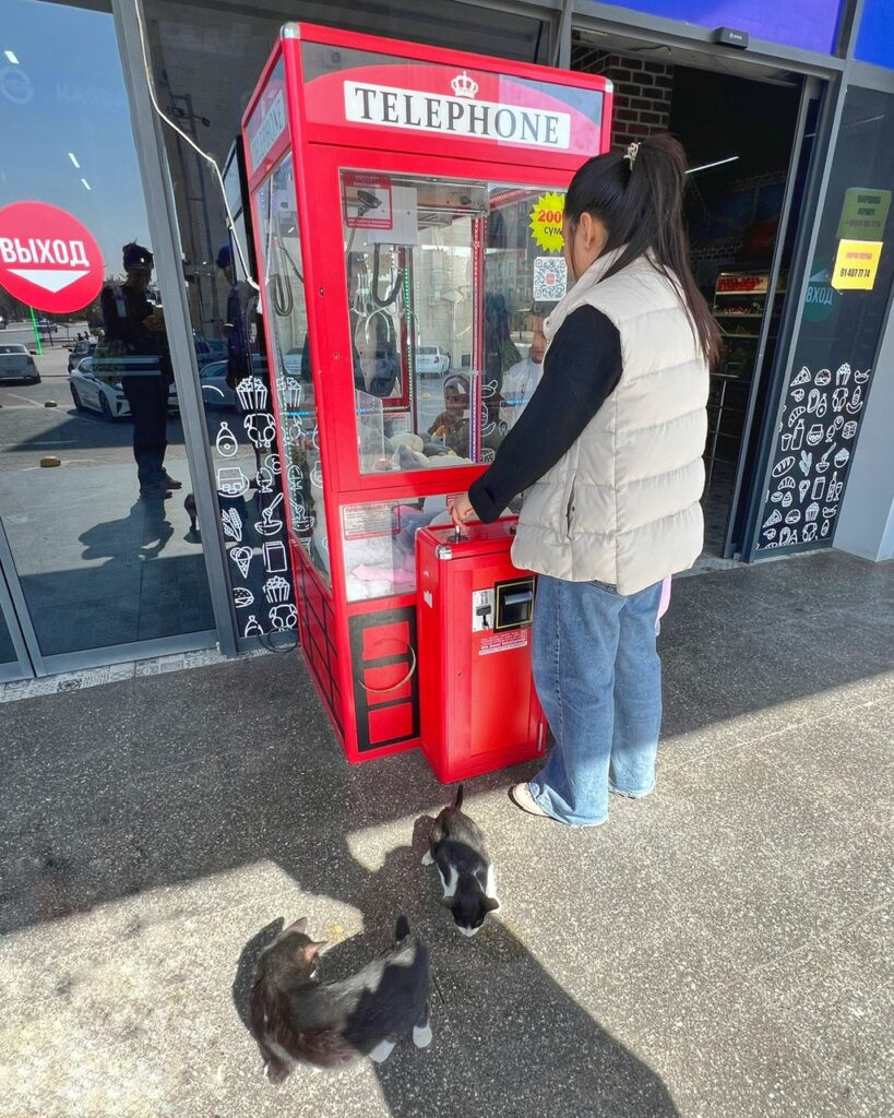 It’s not everyday you get to save a kitten from the perilous bite of a claw machine, but this was exactly the scenario we experienced while in Bukhara while coming out of the supermarket one day. Indeed…the little ball of mischief obviously found his own way in through the cat-door-looking flap, got hopelessly stuck and clambered his way toward the light above…the light of course being in an enclosed plastic box, with several plushy buddies to tumble on.