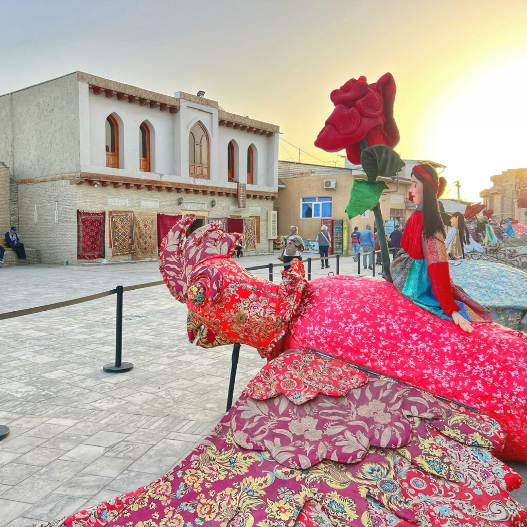 The Bukhara Puppet Procession installation is a collaborative project that merges folk puppetry, textile heritage and mythic storytelling.