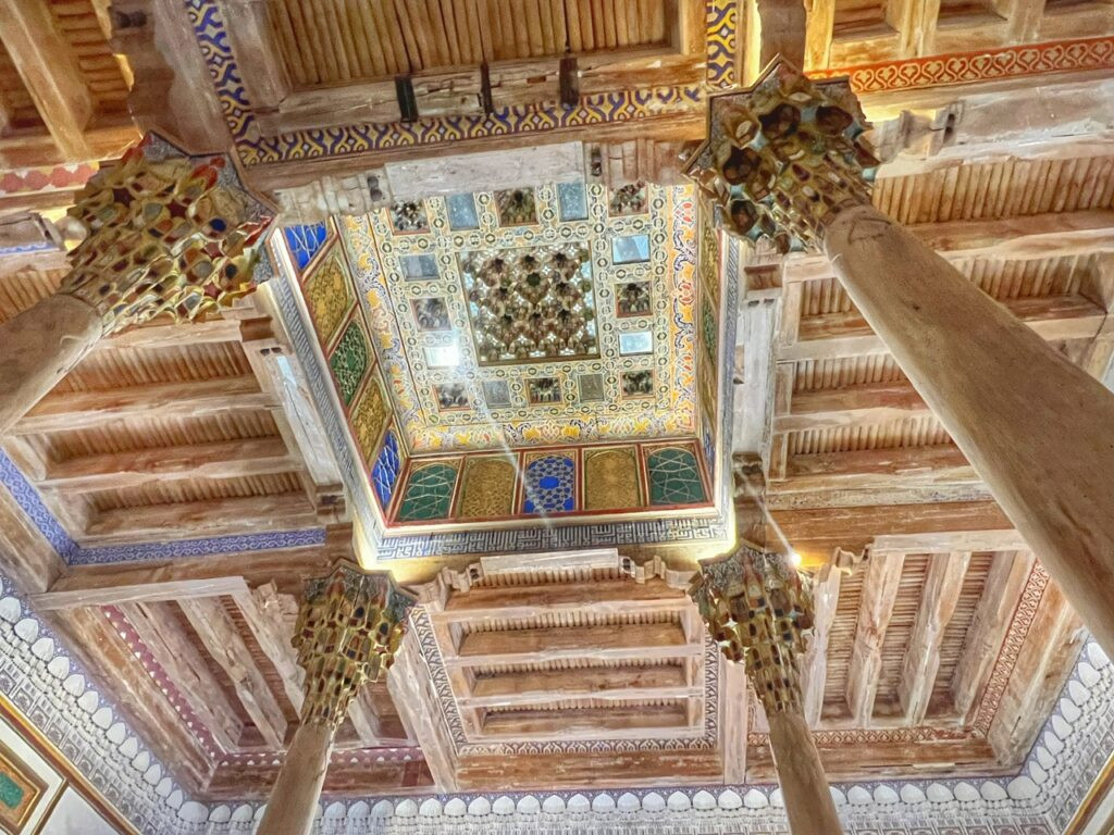 The price of admission also included several museums inside. They felt like a zoo of people, so a quick snap of the ceiling felt like enough for us. We were more excited to check out the pristine view of old town Bukhara from the fortress.
