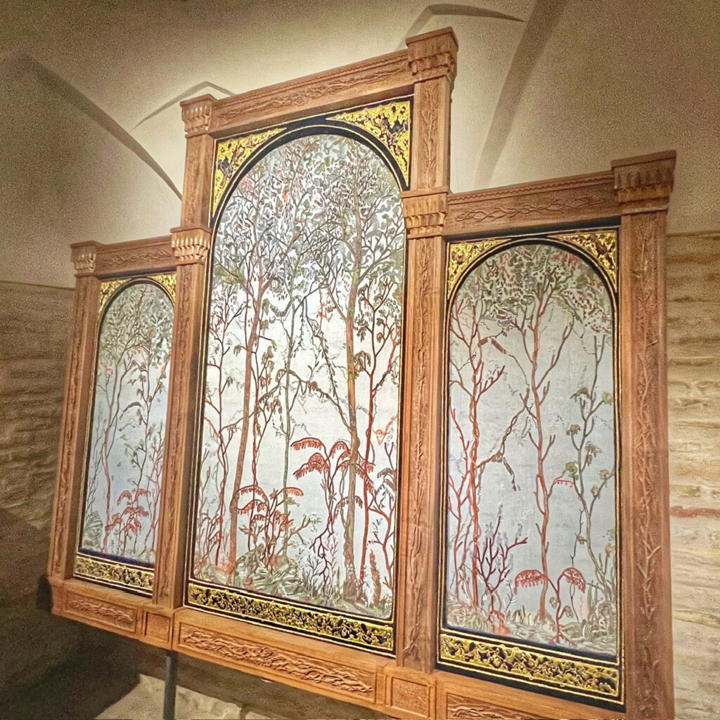 An embroidered masterpiece. It filled an entire room of the former inn. This was near an intriguing spiral staircase to….?