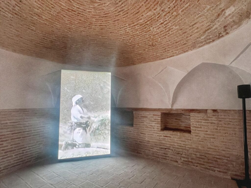 The most expansive and engrossing installation was in Caravansarai Mirzo Ulughbek Tamkifurush, which roughly means “tobacco seller.”