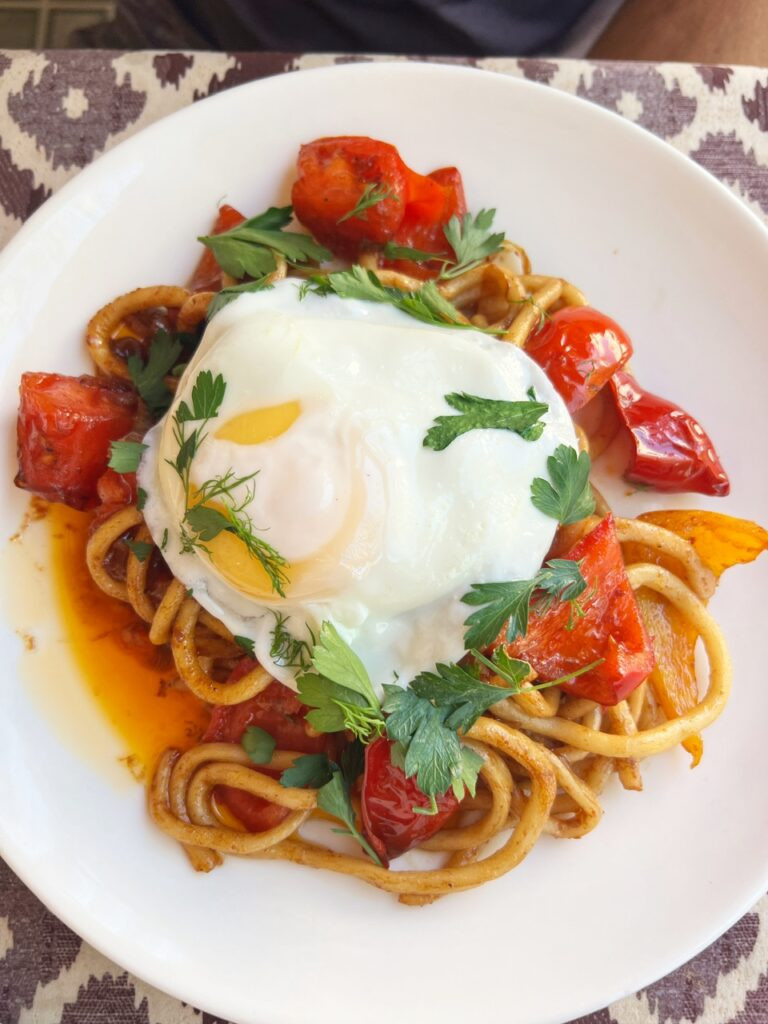 Photo 1: One last meal of vegetable lagman. The hand-pulled noodles were certainly amazing (the first dozen times we had this dish…)