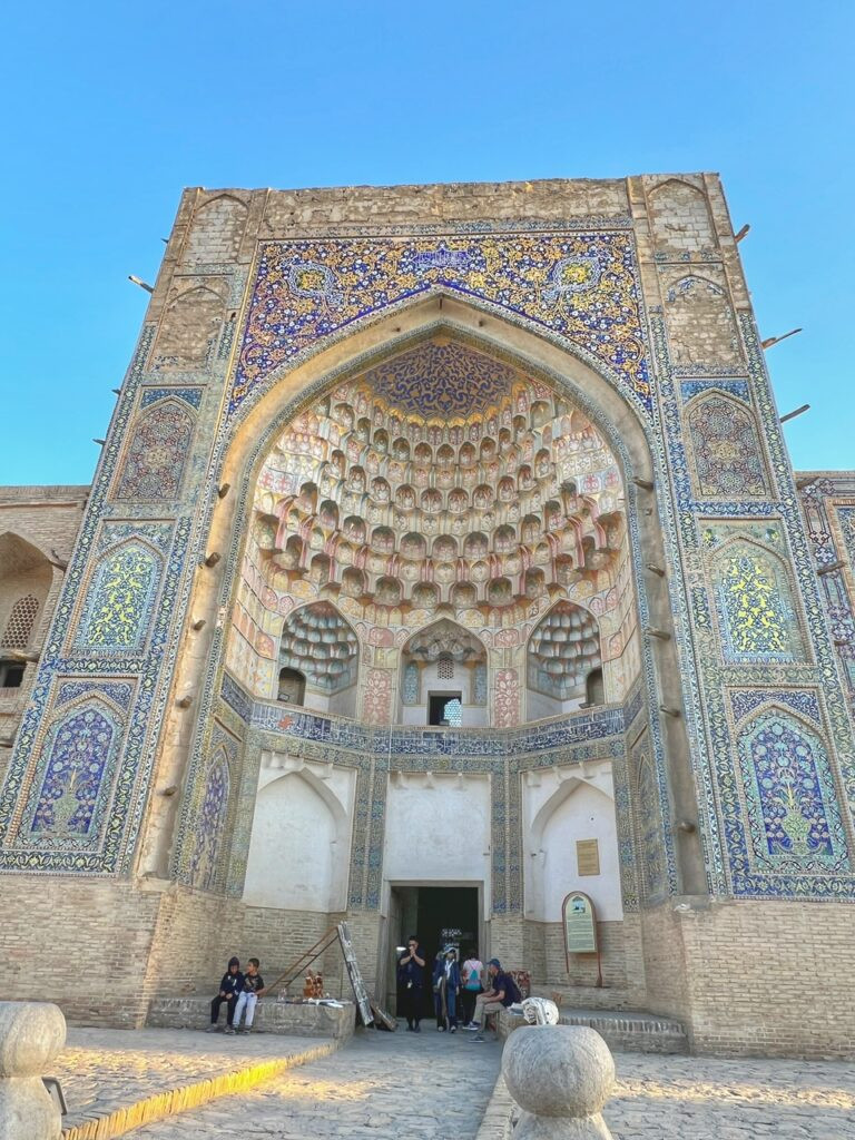 According to Chat GPT, despite its name, Nodir Devonbegi Madrasa was not originally built as a madrasa in the 17th Century. It was supposed to be a caravanserai. However, during its inauguration, the ruler basically declared, “What a wonderful madrasa!” — which was not the original plan — so Nodir Devonbegi had to quickly convert it into a madrasa so he could save face. Sounds like a flub familiar to a certain “ruler” we know….😂