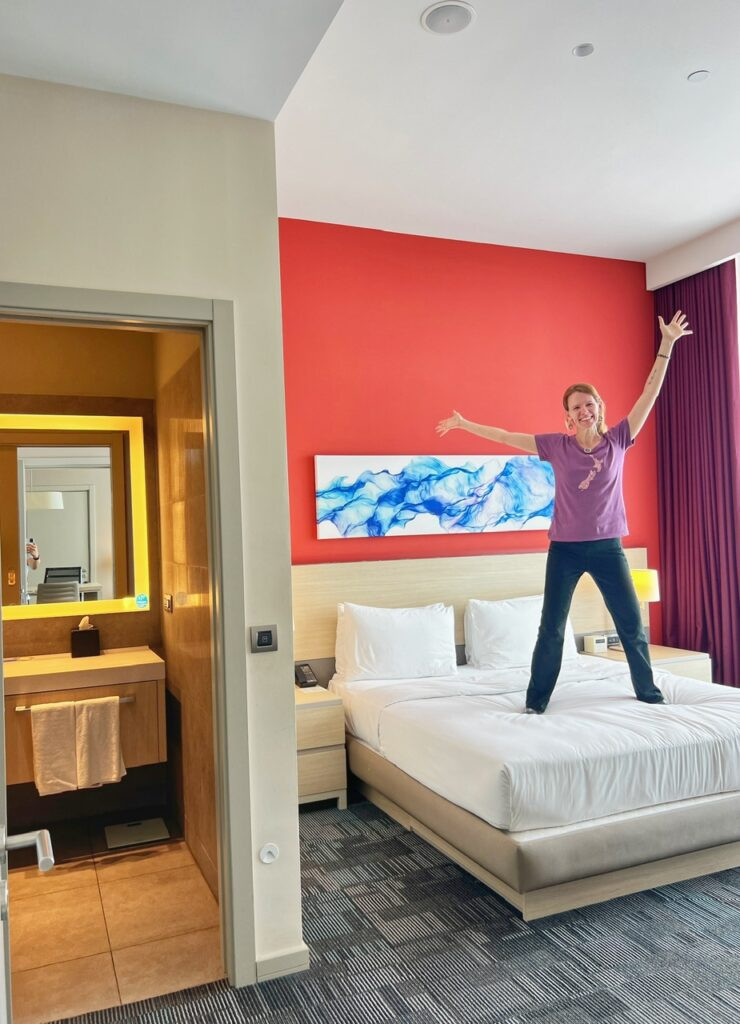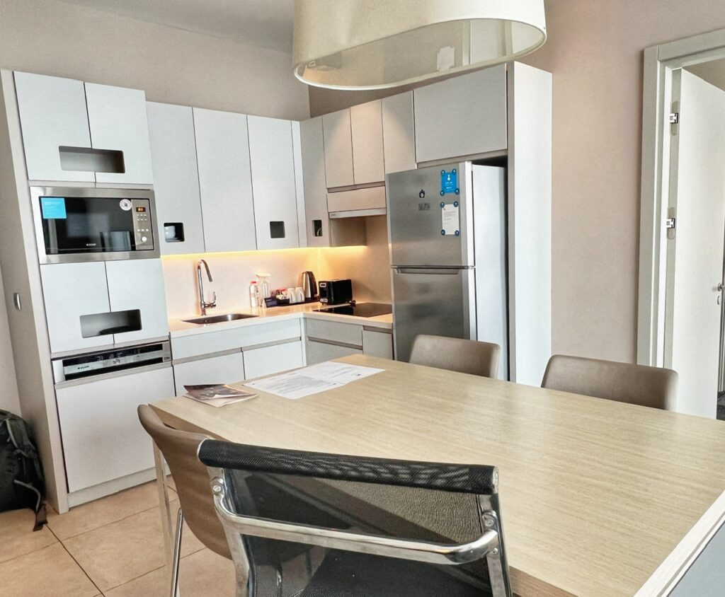 This one bedroom bougie suite with kitchen, for example, cost us 5000 points, or about $50 for a $200 room.