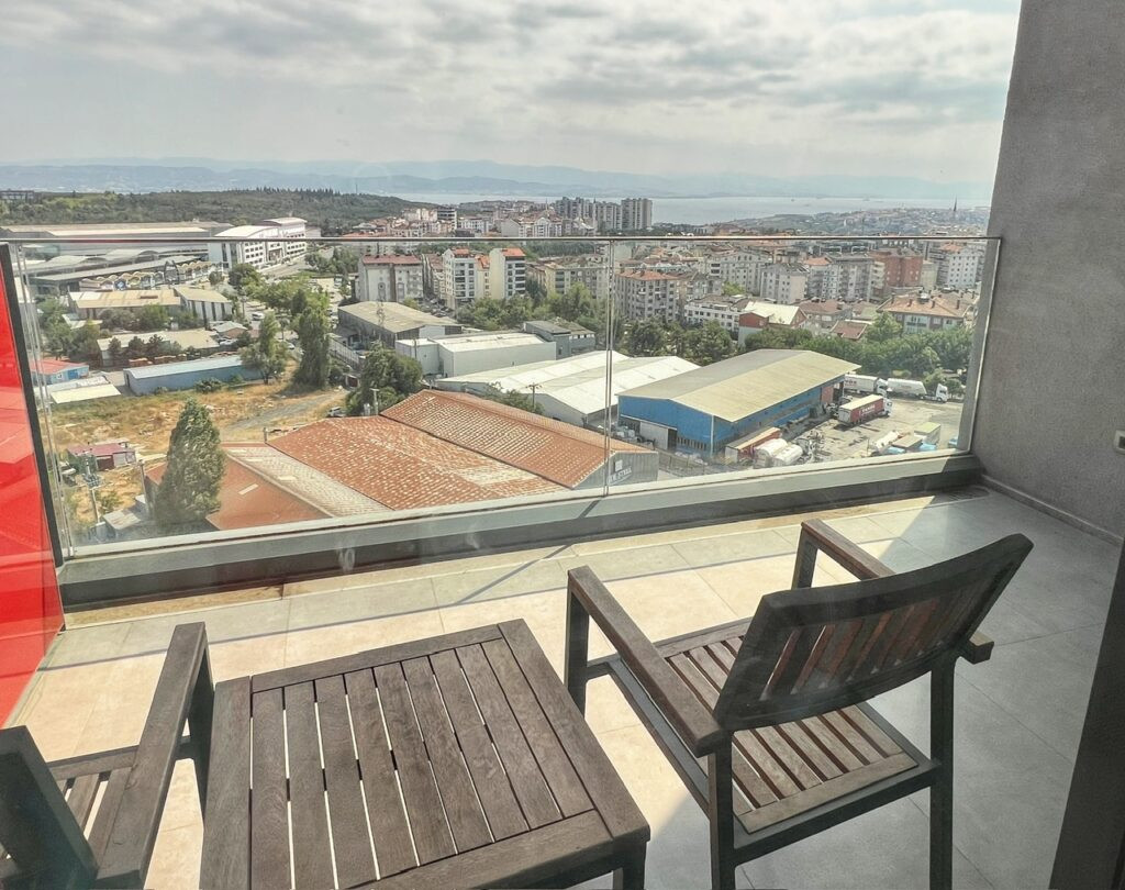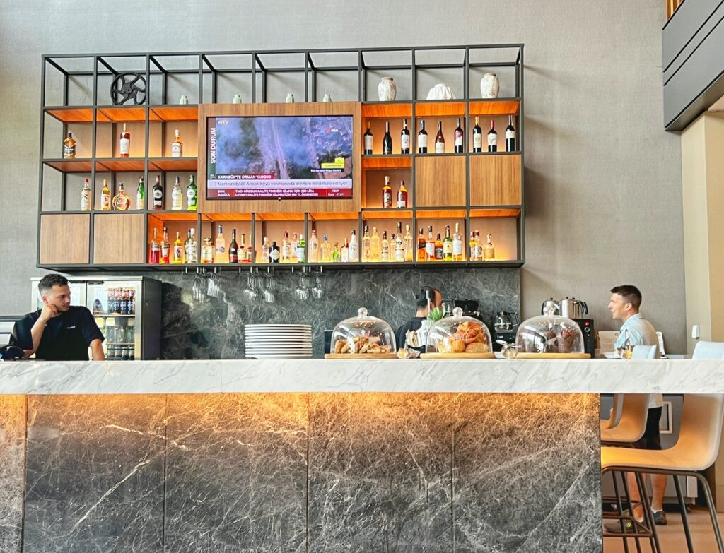 And the icing on the cake was they upgraded us to a sea view! And…when we thought it couldn’t get any better…. this nice young Turk tapped on the door to deliver us our (complimentary) welcome snack. Whaaaaa?!?? It wasn’t wine…because this is Türkiye, but a bubbly and fancy rendition of water that when placed in a wine glass feels as good as the real stuff (almost.) 🤣