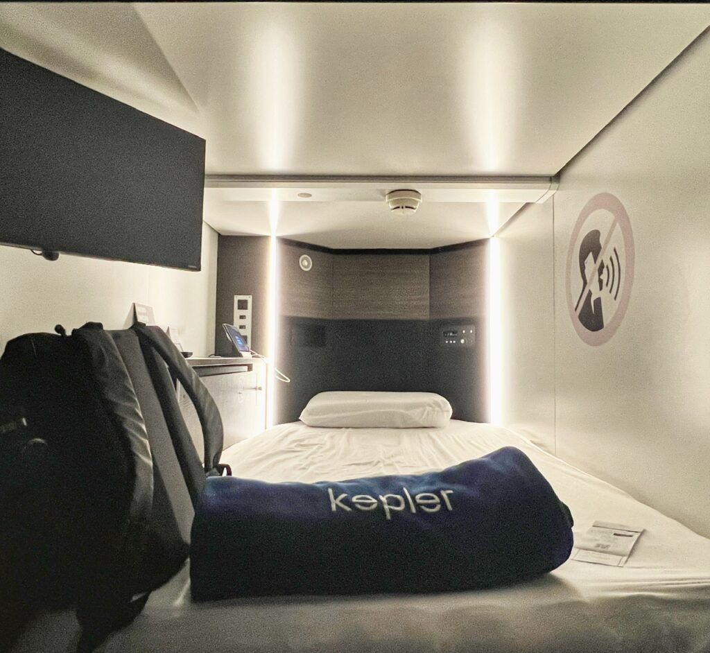 But first…en route…the opportunity for some first world gluttony including our premiere airport sleeping pod experience and our first Hyatt. (At least that we “paid for” ourselves.) 🤣