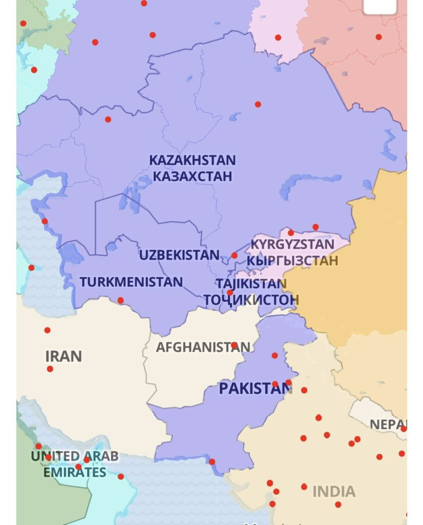 In our usual cranky and zombie disposition after flying all night, we arrived to Almaty at the invigorating hour of 4:15, just before the sun announced herself to this particular “Stan.” Yes, the first thing we learned is…it rises THIS early in Kazakhstan in August. This is not because it’s at a particularly high latitude. In fact, it sits at 43.2 degrees, which is actually the same latitude as our last home in Portland, Oregon. But that doesn’t stop it from having a quite wonky time zone, which consists of the entire country…a quite giant country that would stretch from the west coast to Chicago if dropped atop the USA, or from London to Türkiye if dropped on Europe.