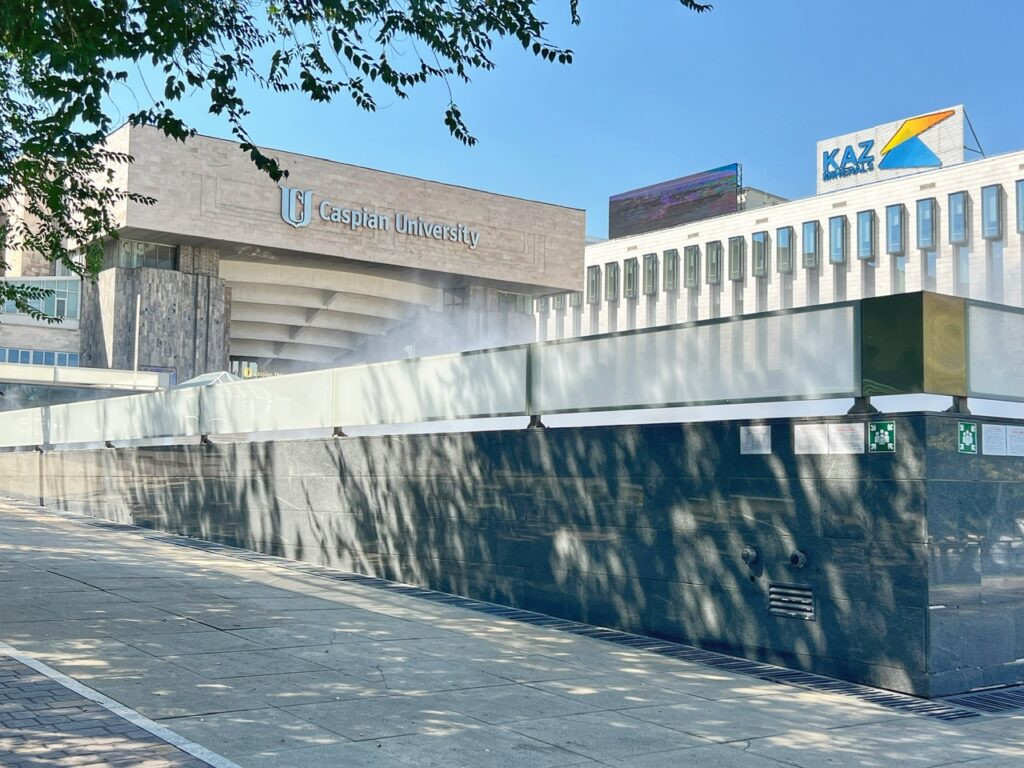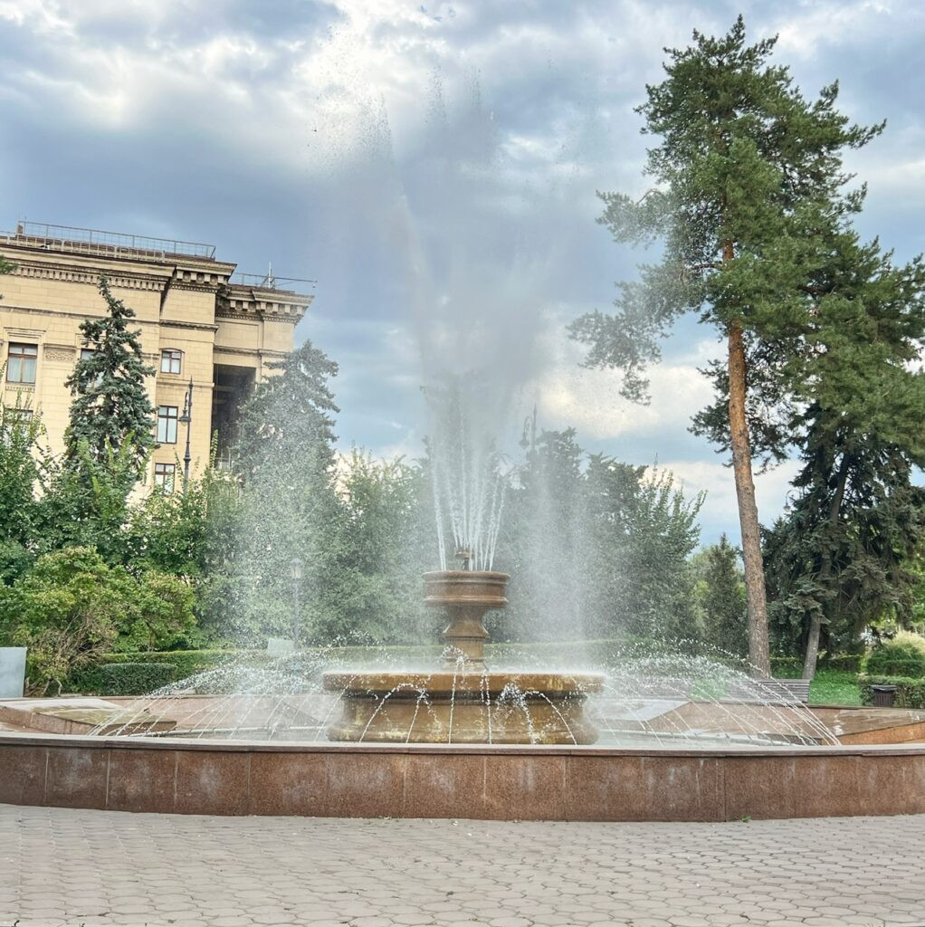 There are also fountains…everywhere! One of the many universities in Almaty. Despite the number, we were a bit surprised that English was rare to encounter, even from young people.
