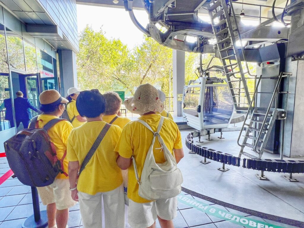 Backtracking a bit, a cluster of Chinese women in matching tshirts heading up the gondola to Kok Tepe. The gondola cost about $8/ticket. Almost everywhere we’ve been takes, and prefers, contactless credit cards. Yay! More points! Up we go!