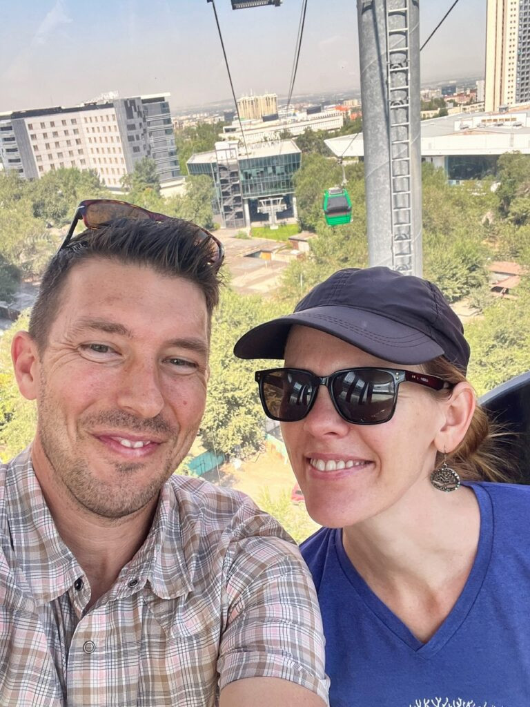 It’s not everyday you get to turn 45 in Kazakhstan, but it’s exactly what Mandy “achieved” on August 9, 2025. We filled the baking August day by heading up a gondola to Kok Tepe, “splashing out” on a sensational Georgian lunch…a cuisine we haven’t had since…well…Georgia, and meeting up with Jonathan, our Colombian friend, who would be traveling with us for the next few weeks.
